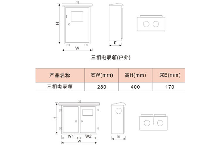 三相電表箱是一種安裝三相電能表的配電箱,門上開有抄表窗口,主要用于工礦企業(yè)需要三相電力的配電系統(tǒng)中。